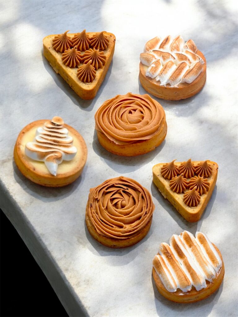 Chaque jour, une sélection de pâtisseries maison, inspirées par les saisons, est proposée à emporter ou à savourer sur place.